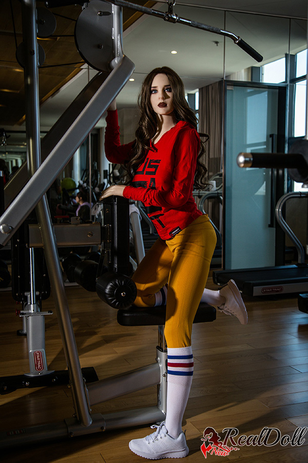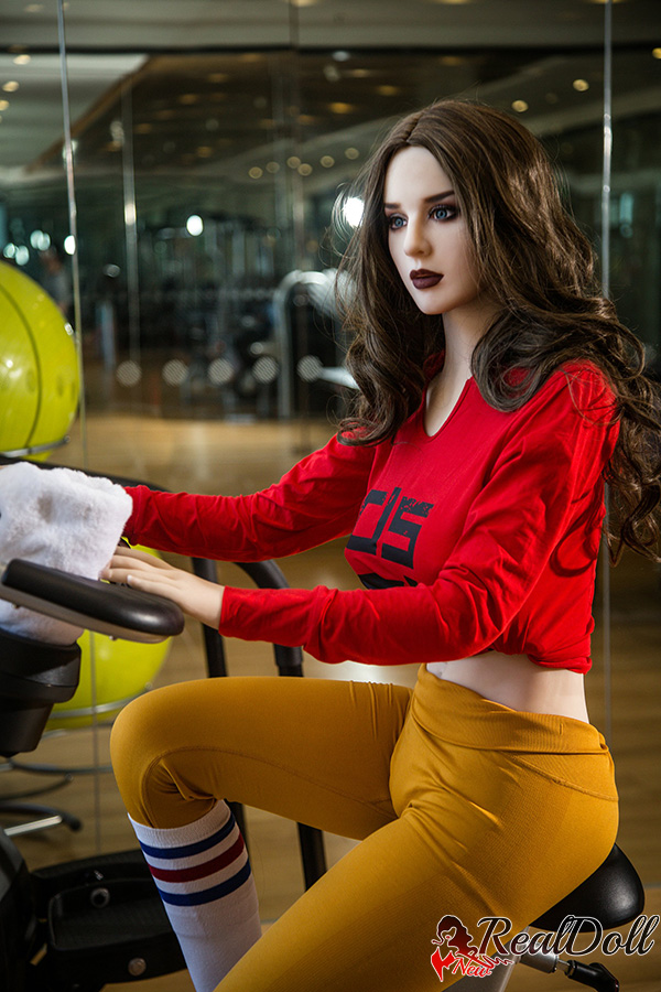 The woman in the red top and orange yoga trousers is pedalling a spin bike in the gym. She is in her early 30s and has long, curly brown hair cascading down her back. There is a determined look on her face and she is clearly trying to push herself. Her legs are pumping furiously and her arms are gripping the handlebars tightly. She was sweating profusely, but she didn't seem to notice. She's focused on her workout and she's determined to get the most out of it. The pornstar sex doll is pedalling to the music playing in the gym. The music is upbeat and motivational and seems to be helping her push herself harder. She is sweating, but she is smiling. She is enjoying her workout and she is feeling good.