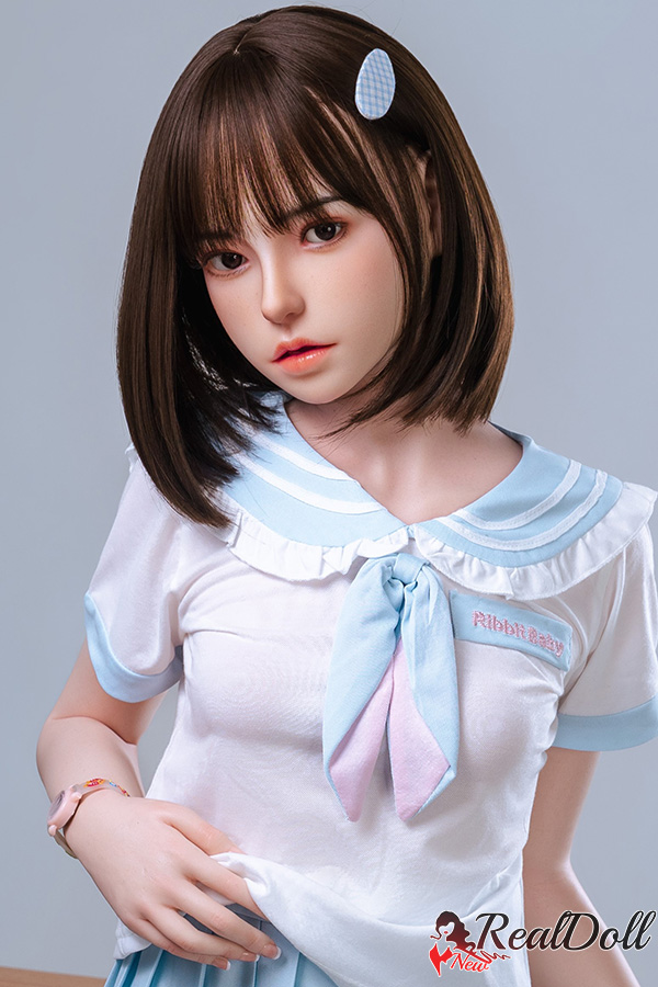 The short-haired Asian girl with a blue barrette on her head is a picture of youthful charm and style. Her hair is neatly cropped, falling just above her shoulders, framing her delicate features. The blue barrette adds a touch of playfulness to her appearance, securing a small section of hair on one side. She exudes confidence and grace as she stands tall, wearing a blue sailor suit that perfectly complements her complexion. The sailor suit consists of a fitted top with a sailor collar and a pleated skirt that falls just above her knees. The blue color of the outfit matches the barrette, creating a harmonious and coordinated look. The Chinese sex doll sailor suit's design evokes a sense of nostalgia and innocence, reminiscent of classic school uniforms. Overall, this short-haired Asian girl with a blue barrette and a blue sailor suit embodies a blend of elegance, youthfulness, and a touch of whimsy.