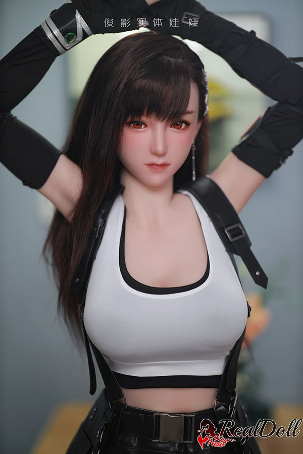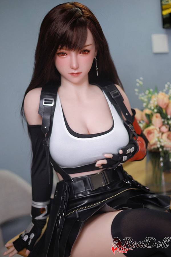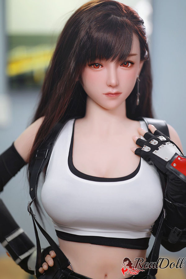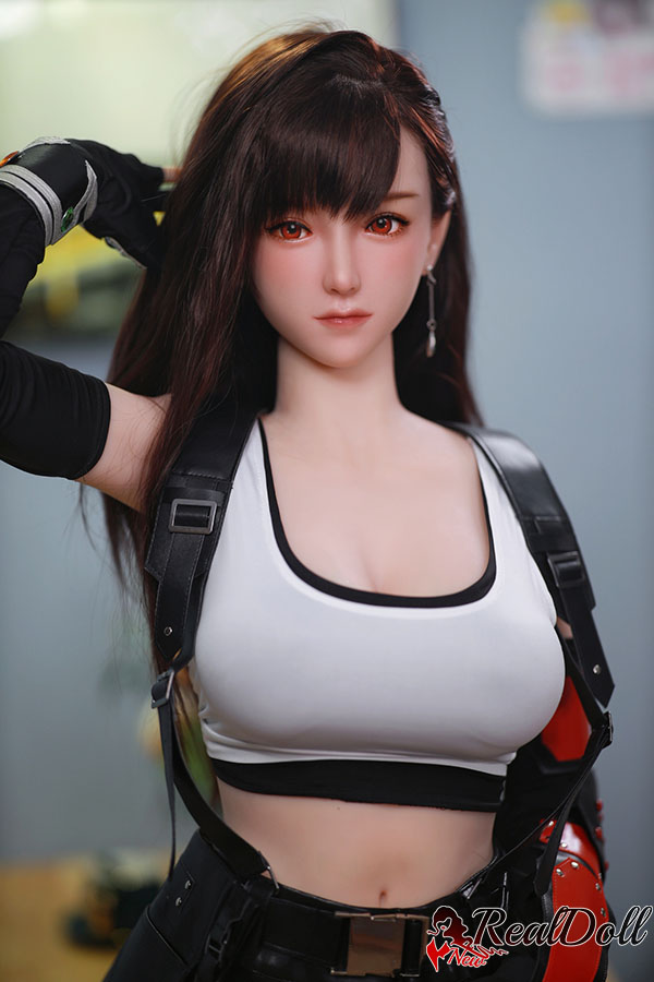 The girl with long black hair dressed as Tifa is a cosplay enthusiast who has put a lot of effort into her costume. Her long black hair is styled in Tifa's signature updo with loose strands framing her face. She is wearing a black cropped top that shows off her toned midriff and a matching black skirt with a slit on the side. Her costume also includes Tifa's iconic fingerless gloves and combat boots. She carries a prop weapon that looks like Tifa's oversized metal gloves. Overall, tifa sex doll looks confident and fierce, embodying the spirit of the character she is portraying.