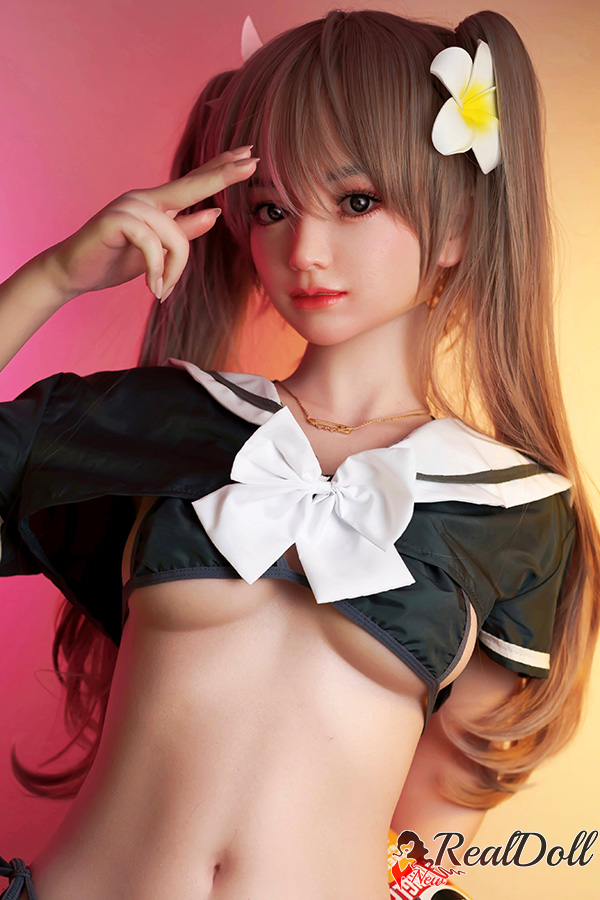 This girl is a fashion-forward individual who is confident in her own skin. Cute sex doll is wearing a super short top that shows off her midriff and has twin ponytails tied up with a cute floral hair clip on her head, giving off a playful but stylish vibe. The three-point black bikini underneath shows off her curves and completes her look, making her ready for a fun day at the beach or pool.