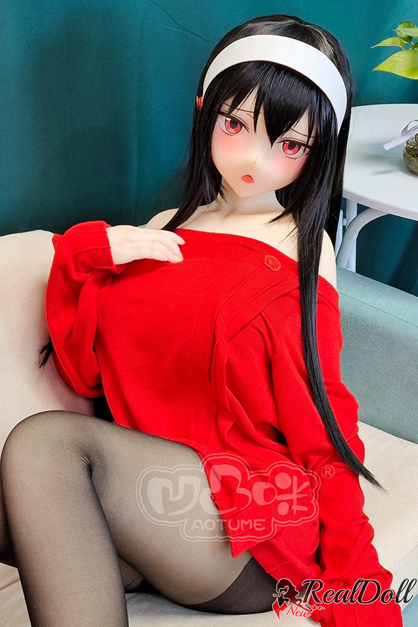 An anime style girl in a white hairband, red jumper and black stockings stands in front of a large window, looking out at the city below. She is about 16 years old, with long, flowing black hair and large, expressive eyes. Her skin is pale, and her features are delicate. She is wearing a simple red jumper that hugs her curves, and black stockings that accentuate her long legs. She is wearing a white hairband that keeps her hair out of her face. The girl is beautiful, but she also looks sad. She is lost in thought, and her expression is one of longing. Anime sex doll is clearly dreaming of something, or someone, that is not here. Perhaps she is thinking of a faraway home, or a lost love. Whatever she is thinking about, it is clear that she is not happy.